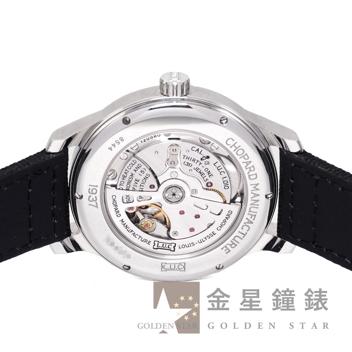 L.U.C 1.010 自動上鍊機芯,動力儲存約60小時,通過瑞士官方天文台認證,半鏤空自動舵 / 黑色漆面立體羅馬數字時標 / 軌道式刻度 / 錶冠雋刻立體『 L.U.C 』字樣 / 指針覆有夜光塗料 / 防水約100米