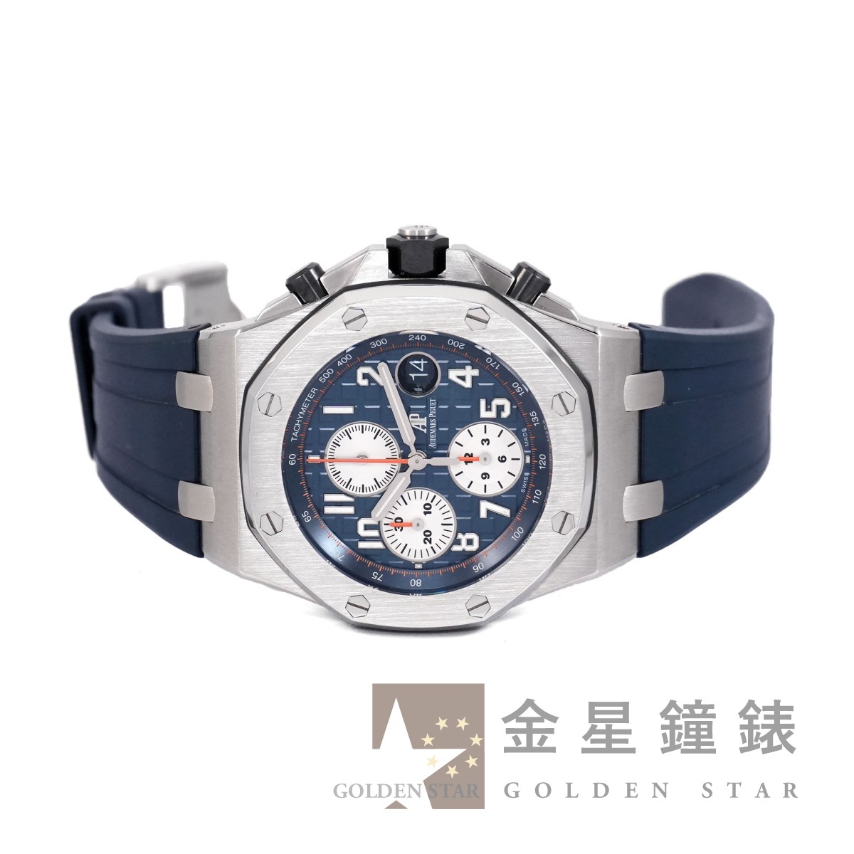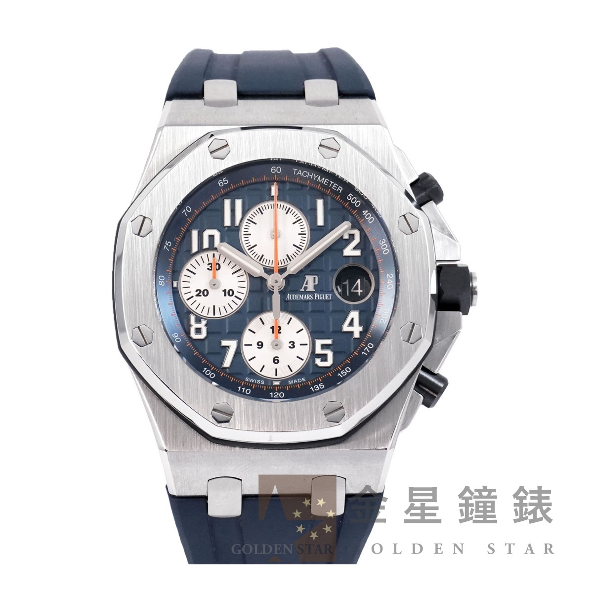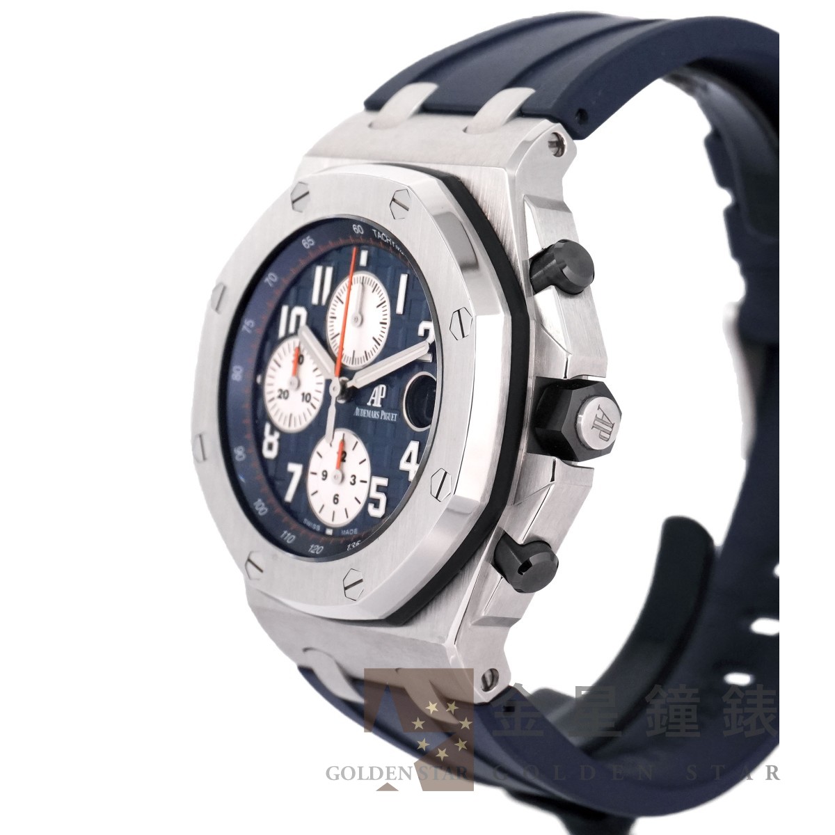 3126/3840 自動上鍊機芯,動力儲存約50小時,22K 黃金自動舵 / 經典八角舷窗造型錶殼 / 錶盤具「 Mega Tapisserie 」超大型格紋裝飾 / 橘色計時碼表累積指針 / 指針'刻度皆覆有夜光塗料 / 黑色陶瓷材質錶冠、計時按把 / 防水100米 / 電子式卡片保卡