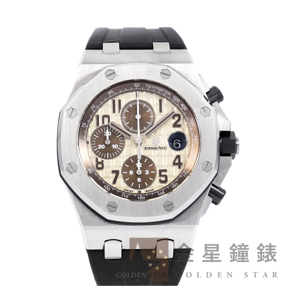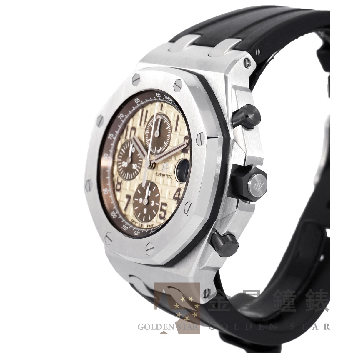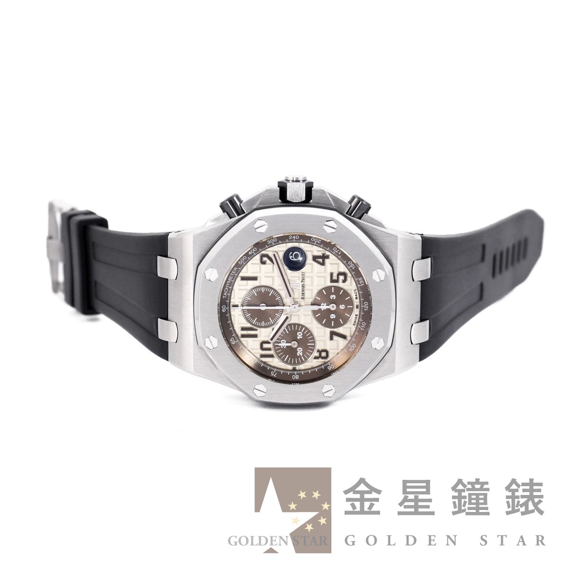 1993 年愛彼發表「皇家橡樹離岸型」系列,外型明顯更豪邁瀟灑,不變的是八角型錶圈和八顆外露的螺絲,保留舊設計標誌性 DNA 的同時外觀卻更加厚實、運動。大尺寸的錶徑、錶盤,甚至連錶盤上都採用超大型的格紋裝飾,錶冠兩側也帶有護肩設計,增強其陽剛的運動風格。
