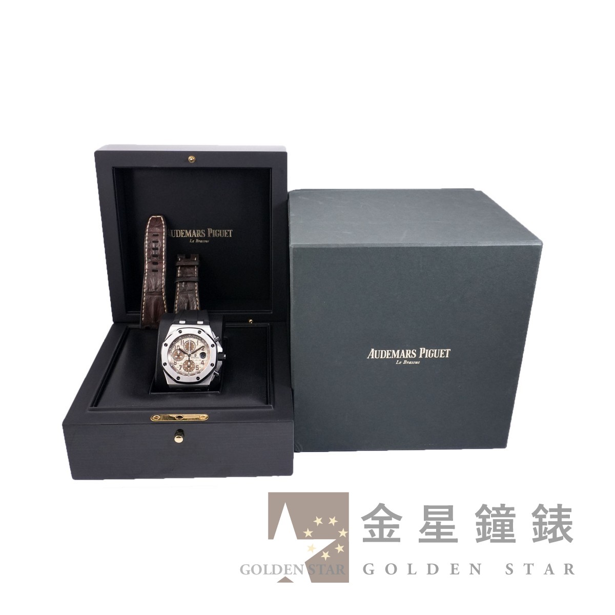 另附原廠棕色鱷魚背骨錶帶
