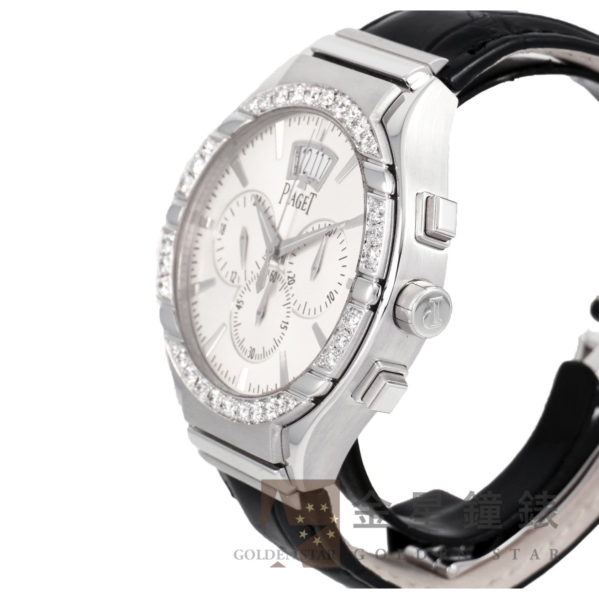錶框皆為原廠大顆美鑽,共鑲嵌 34 顆鑽石,總重約 1.55 ct / 880P 超薄自動上鍊機芯,動力儲存約50小時,導柱輪裝置,雙發條盒,藍鋼螺絲,環形日內瓦波紋 / 18K白金材質立體時標 / 扇形大日期窗顯示 / 指針覆有夜光塗料 / 錶冠具有「 P」字樣雋刻 / 防水約50米