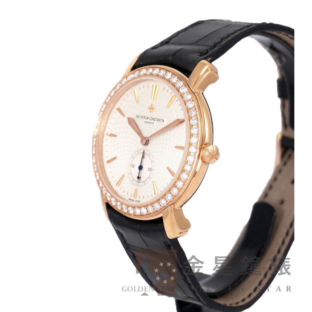 錶框鑲嵌共 48 顆鑽石,總重約 1.12 ct / 1400 手動上鍊機芯,動力儲存約38小時,具日內瓦印記 / 雙層多邊造型錶耳 / 立體金質時標 / 金質劍形指針 / 錶冠雋刻馬爾它十字浮雕 / 防水約30米