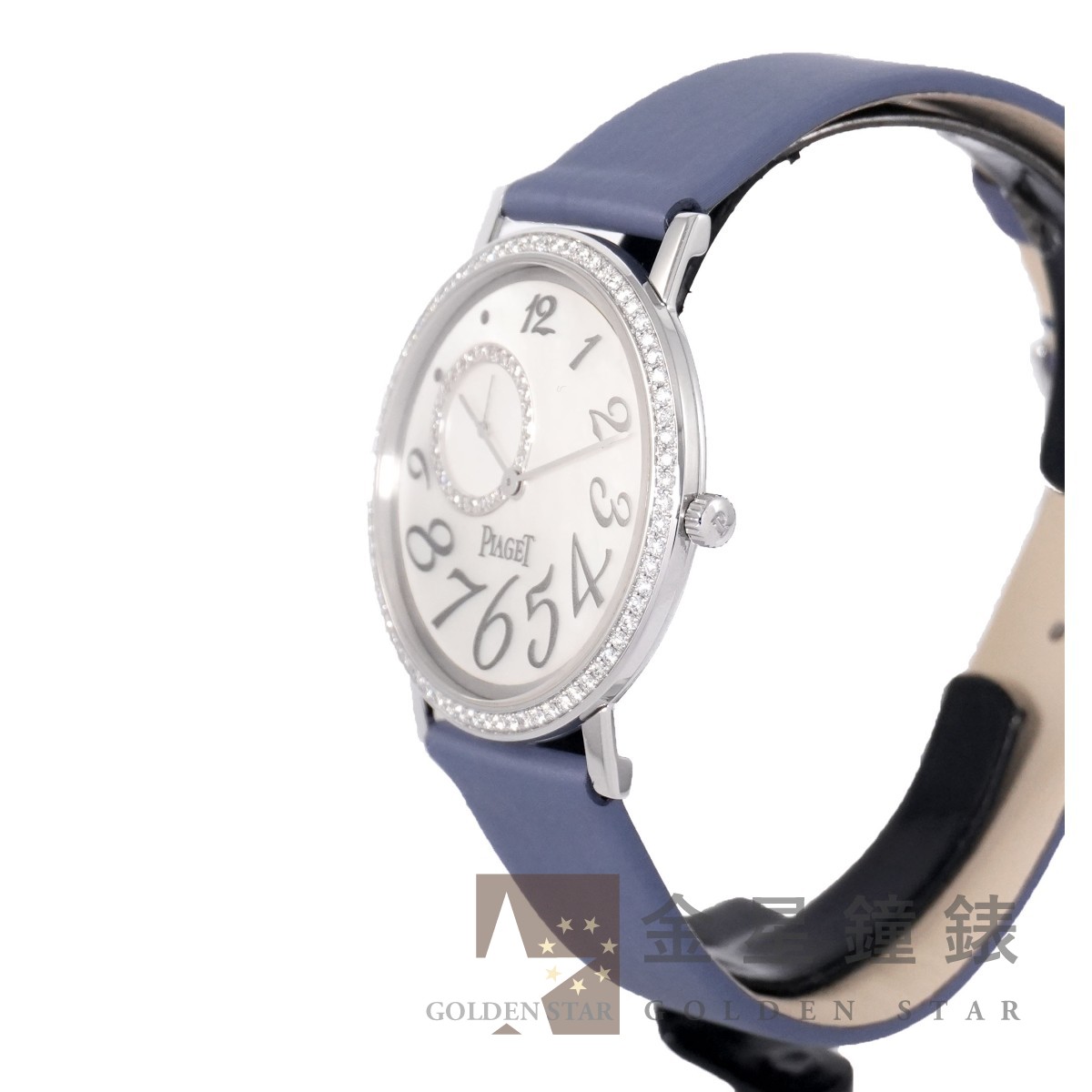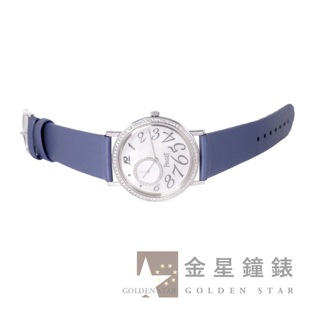 錶盤、錶框皆為原廠鑽石,錶框鑲嵌共 72 顆明亮型切割鑽石,總重約 0.5 ct ;刻度鑽共 28 顆鑽石,總重約 0.1 ct / 450P 超薄手上鍊機芯,動力儲存約43小時,藍鋼螺絲,環形日內瓦波紋,魚鱗紋主夾板,倒角錶橋 / 錶盤外圍有下陷層次處理 / 偏心小秒錶盤 / 錶冠具有「 P」字樣雋刻 / 防水約30米